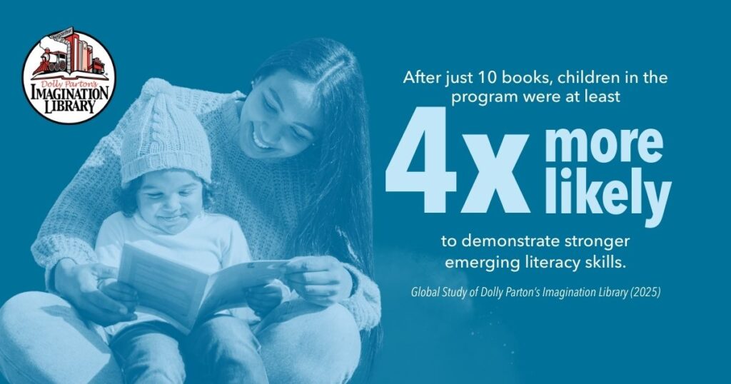 A new study on shared book reading showed that Dolly Parton’s Imagination Library significantly strengthened early literacy skills for children globally, reinforcing the power of shared reading in the earliest years of life.